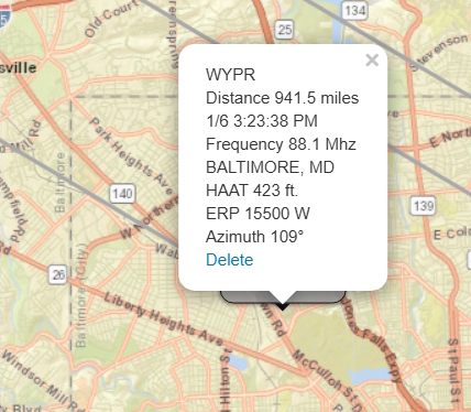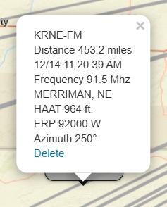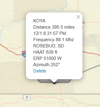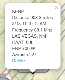 Stations under 120 miles are likely TrE - Tropospheric Enhancement, not full blown tropo, depending on the circumstances. All stations were heard with a variety of radios within 30 miles of the metro area. Most DXing occurs in and around the north metro where home base is. Note: Any station received after May 18, 2018 may have been received in Coon Rapids. Distances after that date will reflect Coon Rapids as opposed to Blaine. Distances prior to May 19, 2018 were from Blaine unless otherwise stated. ERP - Effective Radiated Power is in KW. See glossary for suburb abbreviations. Look for our