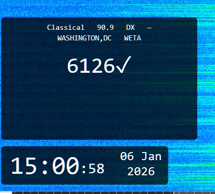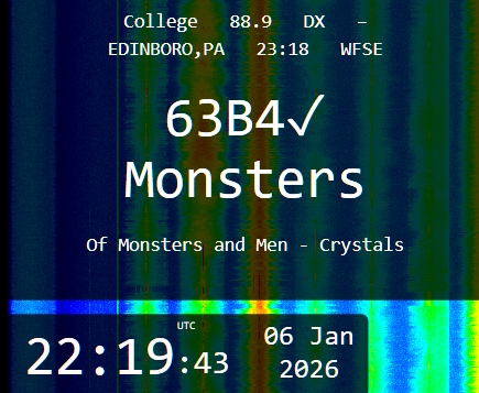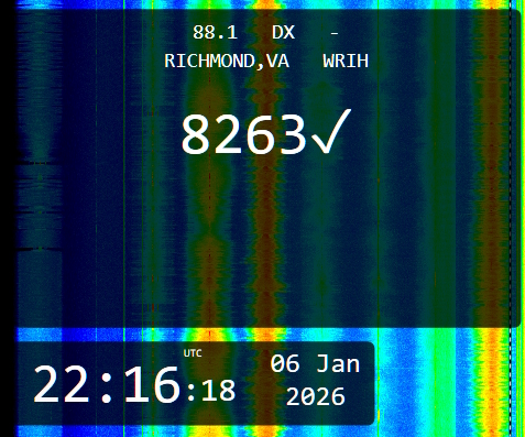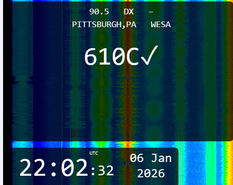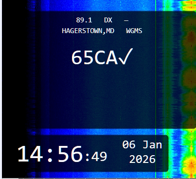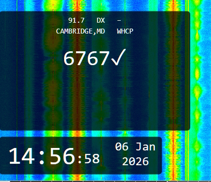Receptions in the metro area are made with a variety of radios, more than likely an RSP 2 Pro with SDRUno or SDR Console, Sony XDR-S3HD, Sony XDR-F1HD, Jensen HD Radio, RTL-SDR (using SDR# or SDR Console), Grundig S350, Grundig G8, or the stock radio of a 2015 Nissan Rogue with RDS. Antenna for the Sony and SDR is a Stellar Labs 4 element FM antenna. Antenna for VHF-Hi is an RCA suburban.
